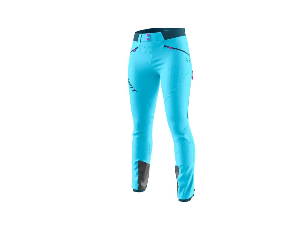 Dynafit TLT Touring Dynastretch W Pants jsou dámské softshellové kalhoty navržené pro rychlý a efektivní skialpinismus. Vyrobeny z lehkého a pružného Dynastretch® materiálu, který je větruodolný, vodoodpudivý a maximálně prodyšný. Kalhoty mají úzký sportovní střih, ventilační zipy pro odvod tepla při výstupu, elastický pas a zesílené konce nohavic, které chrání před poškozením od hran lyží.