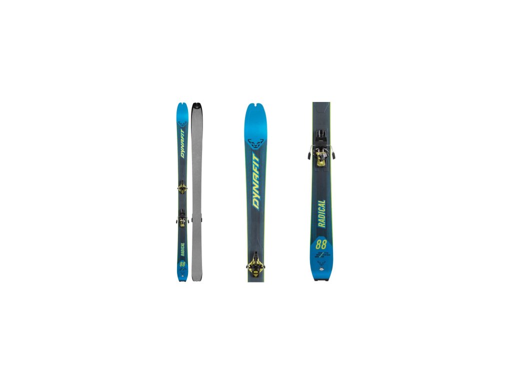DYNAFIT Radical 88 je všestranný skialpový set, s jádrem z topolového dřeva, které díky velmi dobrým odrazovým a tlumícím vlastnostem, zaručuje perfektní výkon lyže při sjezdu. Speciální odlehčená konstrukce s karbonem zajišťuje výborný poměr mezi nízkou hmotností a tuhostí lyže. Speedskin Radical 88 jsou odolné a trvanlivé stoupací pásy, vyrobené ze 70% mohérové směsi pro skutečně silné držení při stoupání.